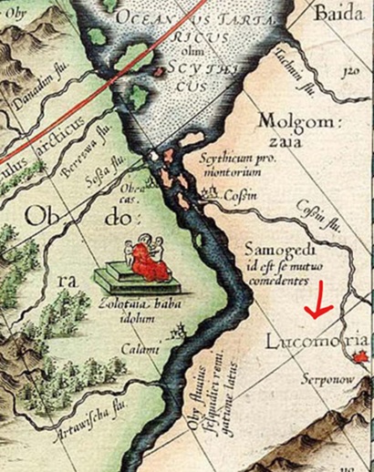 То, что мудрый филин шаман располагается рядом с изображением знаменитого дуба из Лукоморья, может вызвать недоумение - ну какая связь между ними? Но в музее сказок и легенд "Баюшки" после исследования текста сказочного стиха Александра Сергеевича Пушкина пришли к убеждению, что в этом нет ничего сверхъестественного. А верным доказательством этому является один фрагмент карты европейского путешественника Герарда Меркатора 1595 года.