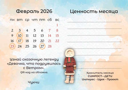 А февральскую Календаринку сопровождает легенда Алёны Внуковой "Девочка, что подружилась с ветром", посвящённая культурным традициям чукчей.