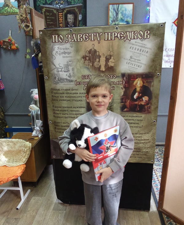 В музее сказок и легенд "Баюшки", следуя традиции "КНИГА - ЛУЧШИЙ ПОДАРОК", подарили книгу Николая Мирного "Твои герои, Россия!" первокласснику Ивану. Ваня пришёл в музей "Баюшки" 23 февраля вместе со своей мамой. Они дружно справились со всеми сказочными испытаниями, проявив знания русских народных сказок и верность культурным традициям России.