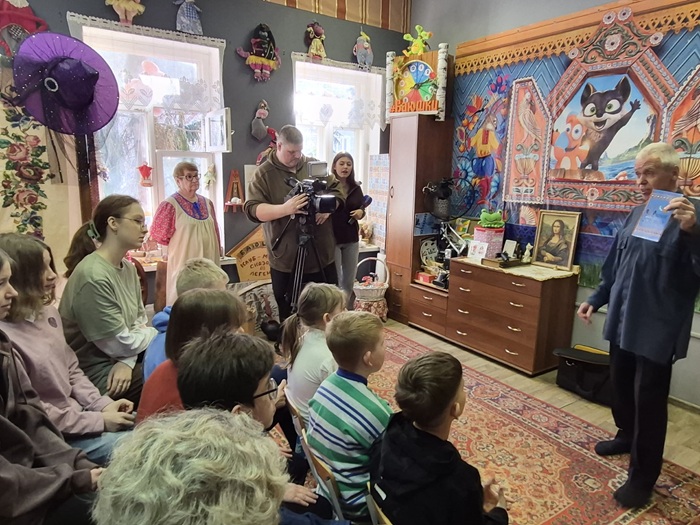 В День сибирской сказки по Календарю сказочных событий в музее сказок и легенд "Баюшки" прошла встреча съёмочной группы ГТРК "Новосибирск" с арт-медиа студией "Чудо-Мир".