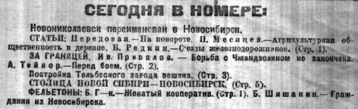 12 февраля 1926 года Постановлением Президиума ЦИК СССР Ново-Николаевск был переименован в Новосибирск (Библиотека сибирского краеведения).
