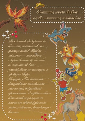 20 апреля 2017 года в городе Новосибирске появился на свет музей сказок и легенд "Баюшки". Через год состоится его первый - 10-летний юбилей. Новое десятилетие в жизнедеятельности всегда является переходом на новый уровень.