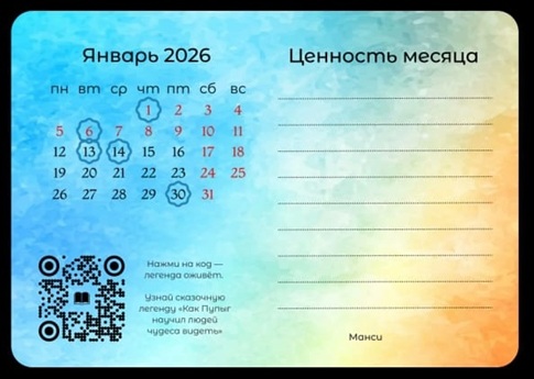 Календаринки на новый 2026 год, посвящённые традициям коренных малочисленных народов, выходят в свет одновременно с появлением новых официальных праздников