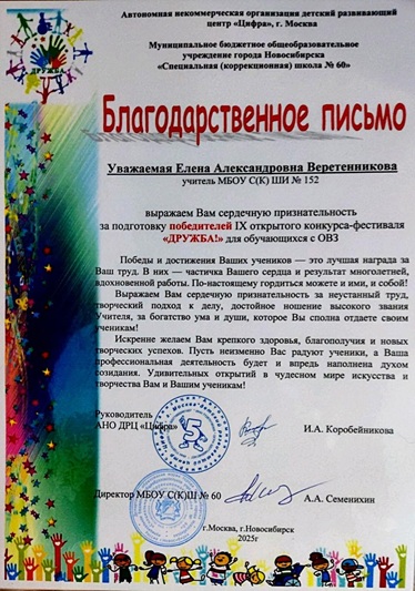 Фонд "Моё открытие Сибири" поздравляет руководителя арт-медиа студии "Чудо-Мир" Елену Веретенникову за блестящую победу команды её подопечного Егора Рогачёва на международном фестивале "Дружба".
