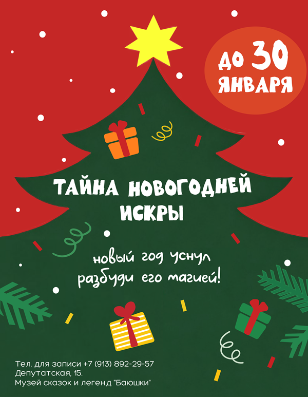 Праздники Новогодних сюрпризов в музее сказок и легенд "Баюшки" продолжаются! И не только - музей "Баюшки" приглашает на свою новую праздничную программу "Тайна Новогодней Искры".
