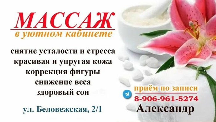 Услуги массажиста Александра Ненашева можно отнести к волшебству. Посудите сами - решение пяти самых актуальных на сегодняшний день проблем одним прикосновением рук - это же настоящее чудо! Подробности можно увидеть ниже. Но если ещё и принять это предложение, то можно в полной мере убедиться в истине написанного.